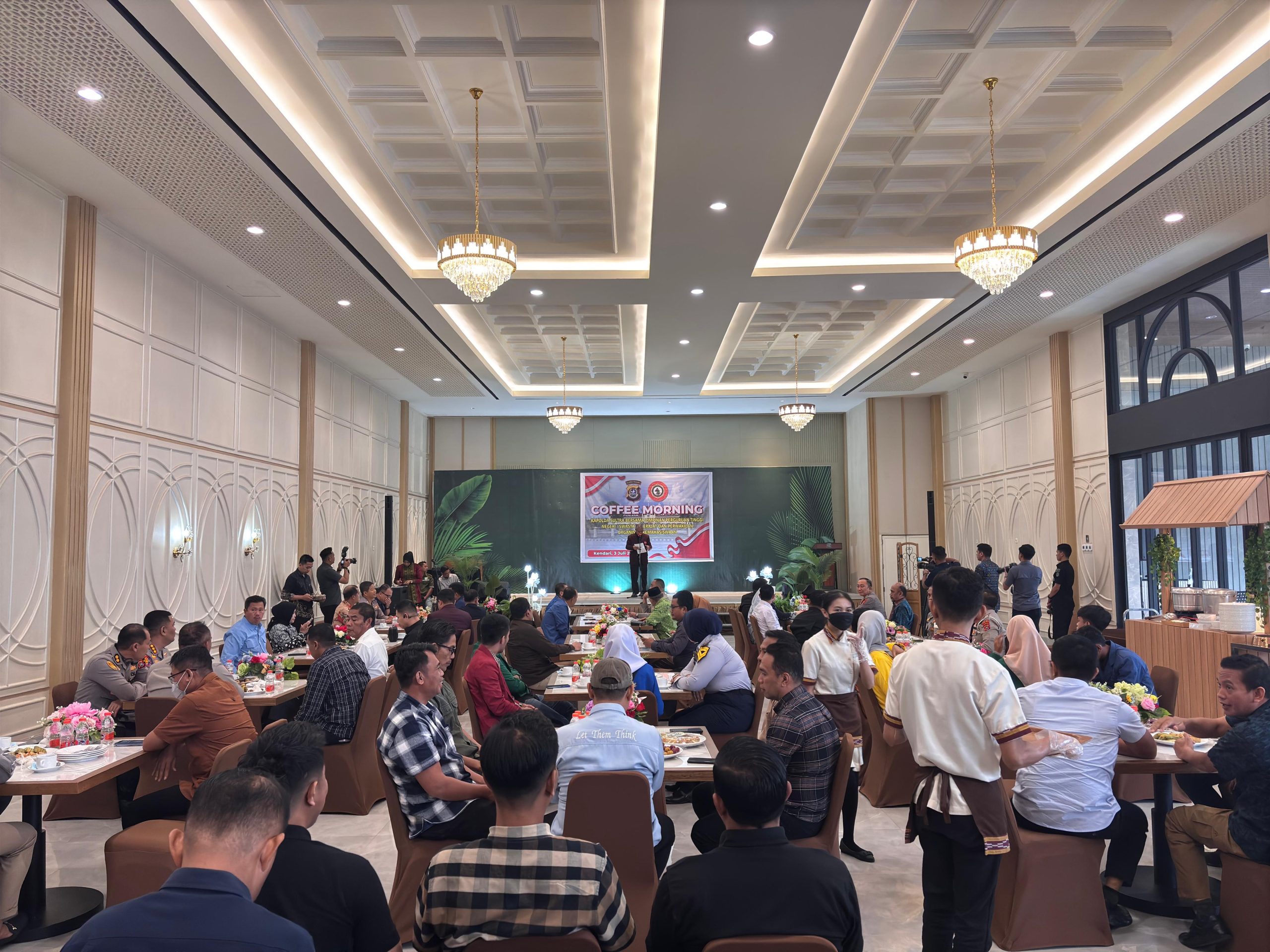 Kendari – INKRAHMEDIA.COM ||Dalam rangka mempererat komunikasi dan sinergi antara kepolisian dan kalangan akademisi, Polda Sultra menggelar kegiatan Coffee Morning bersama pimpinan perguruan tinggi dan perwakilan organisasi kemahasiswaan se-Kota Kendari, Kamis (3-Juli-2025), bertempat di Padi-Padi Resto Kendari.