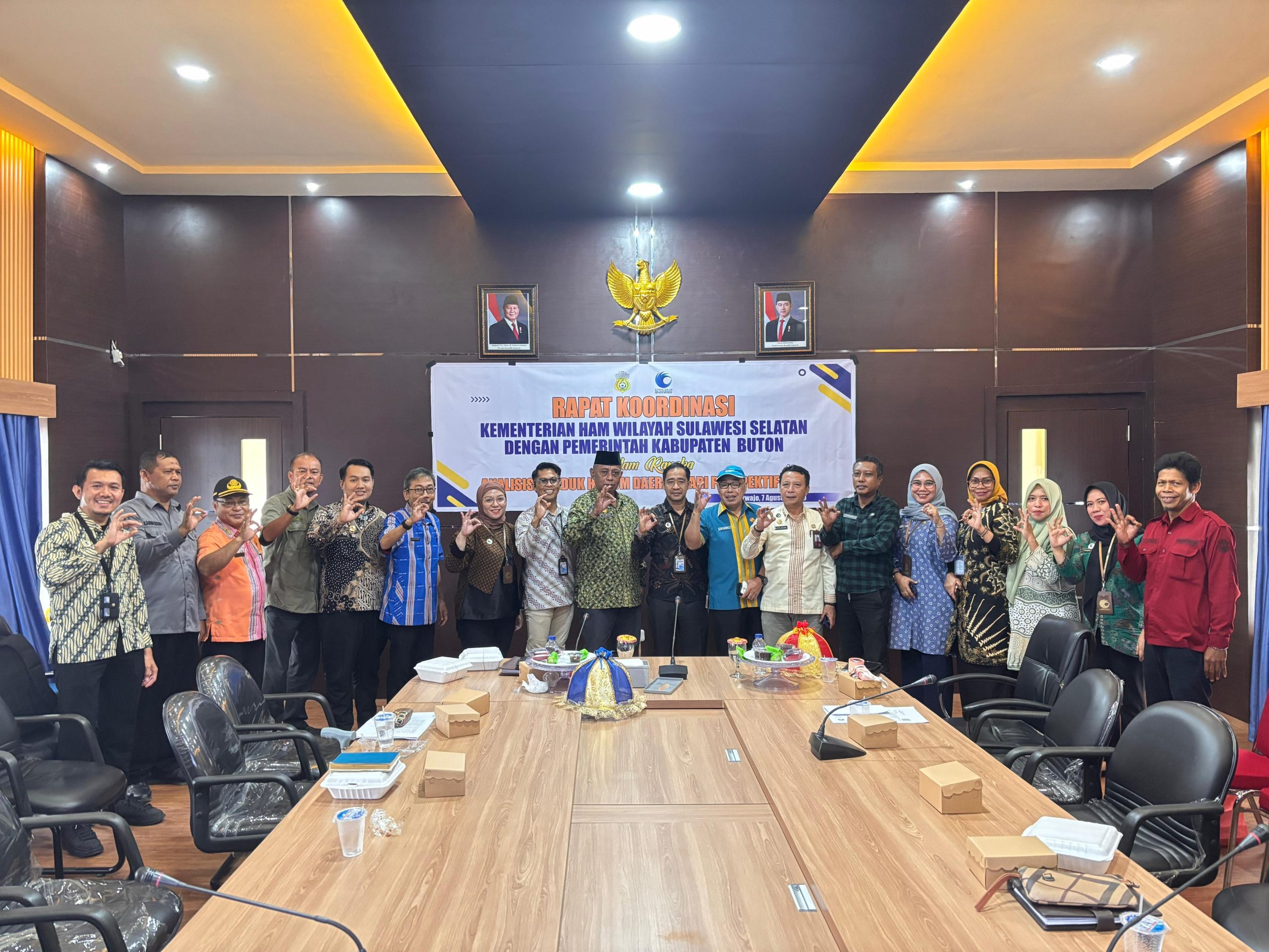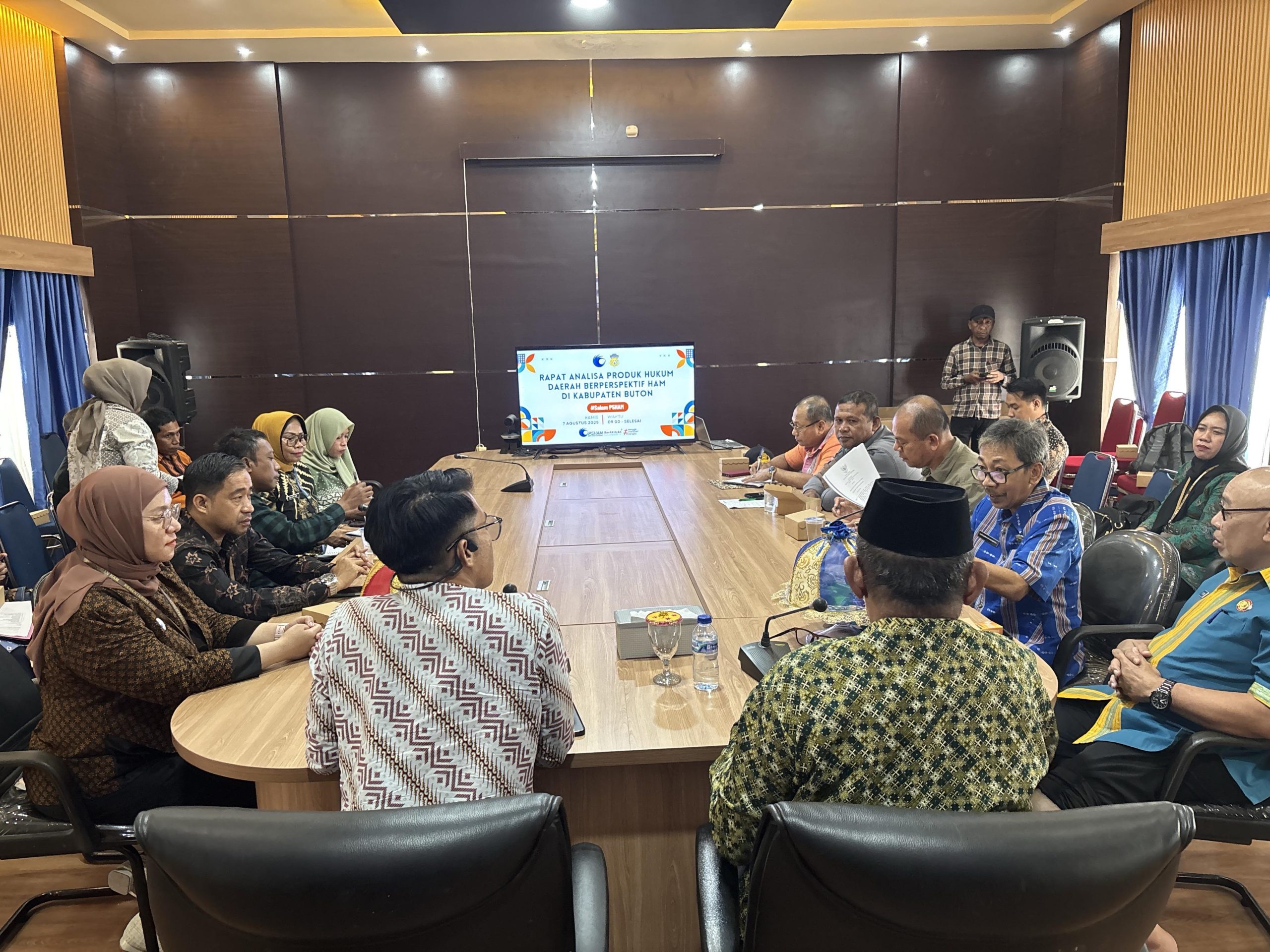 Buton-INKRAHMEDIA.COM || Kementerian Hak Asasi Manusia melalui Tim Instrumen dan Penguatan (IDP) HAM Wilayah Kerja Sulawesi Tenggara menggelar Rapat Analisa Produk Hukum Daerah yang Berperspektif HAM di Aula Kantor Bupati Buton, Kamis (7/8).